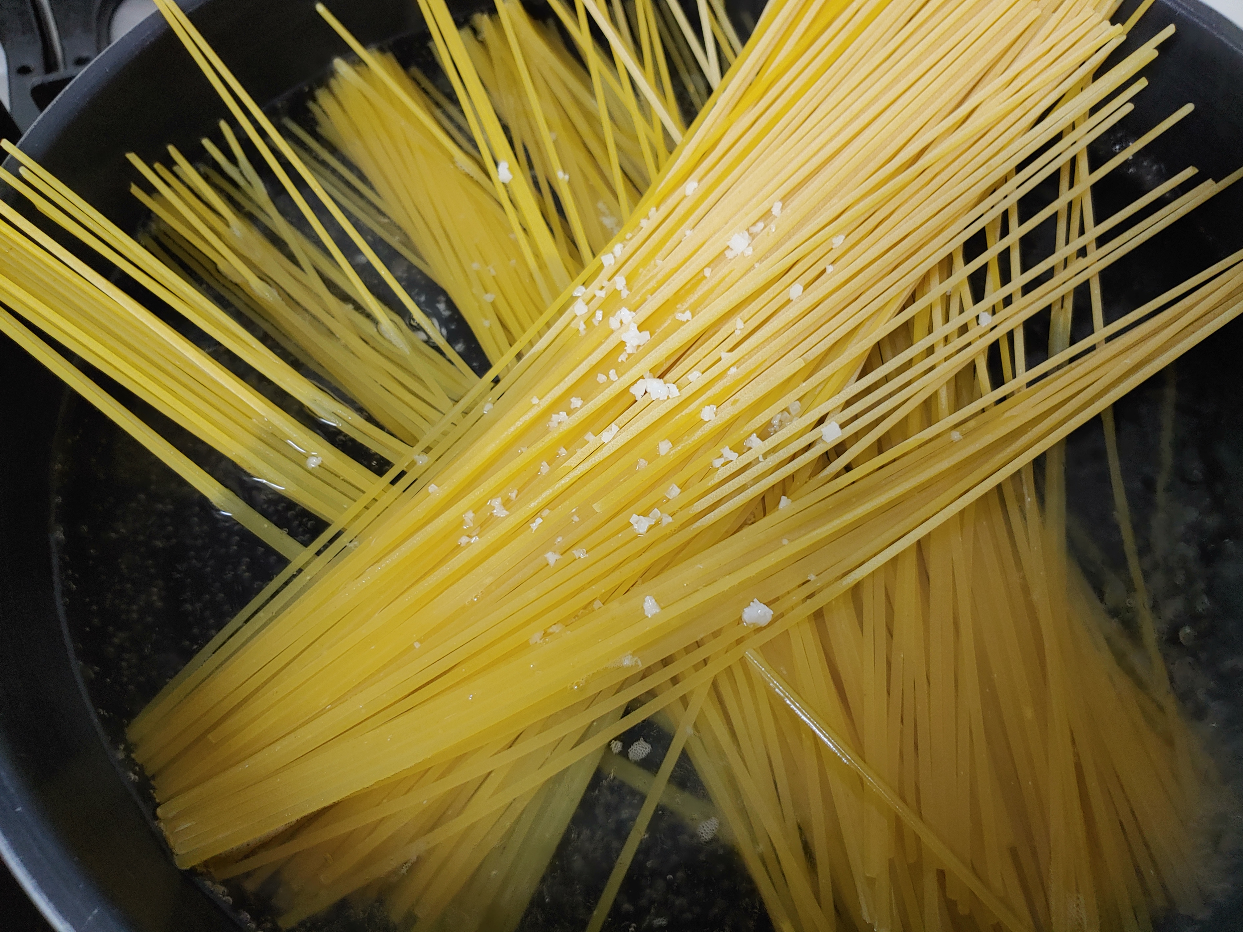 먼저 스파게티면을 소금 약간 넣고 삶아 줍니다.